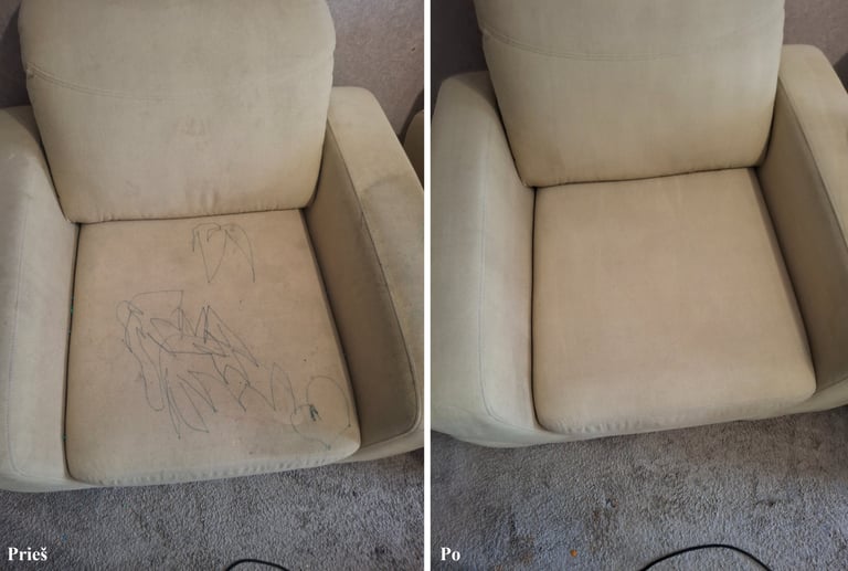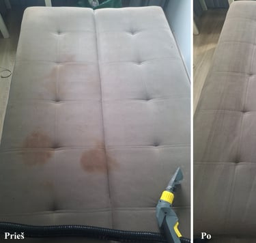 Naudojama profesionali valymo įranga – Karcher. Valome minkštus baldus, čiužinius, kėdes, automobilio saloną.